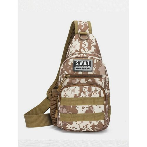 Рюкзак мужской тактический через плечо. Сумка-слинг. Цвет коричневый камуфляж