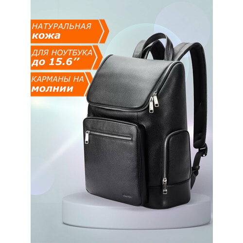 Рюкзак мужской/женский кожаный городской дорожный Bopai средний 25л, для ноутбука 15.6", водонепроницаемый, цвет черный