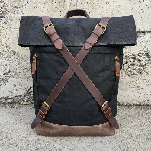 Рюкзак можно использовать как городской повседневный и как дорожный в ручную кладь. Основной материал - прочный вощеный холст (канвас). Этот материал обладает водонепроницаемостью, высокой износоустойчивостью и легкостью чистки. Холст мягкий и приятный на ощупь, при ношении принимает нужную форму. Элементы из качественной натуральной воловьей кожи - толстой и прочной. В сочетании с канвасом кожа с эффектом потертости придает аксессуару изысканный вид.