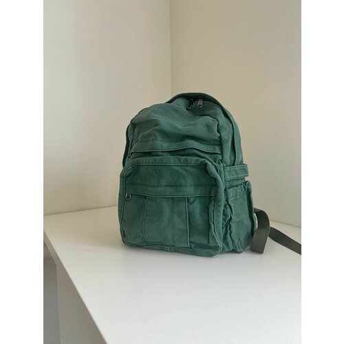 Рюкзак выполнен из натурального хлопка, что обеспечивает его долговечность и прочность. Зеленый цвет рюкзака добавляет яркости и стиля, делая его заметным и привлекательным.