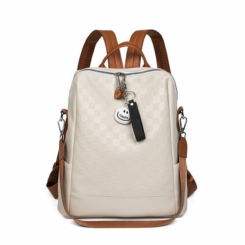 Рюкзак женский Compact White выполнен из мягкой экокожи бежевого цвета, что придает ему стильный и современный вид.