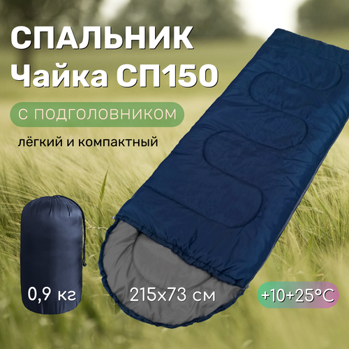Спальник туристический Чайка СП150 синий/серый