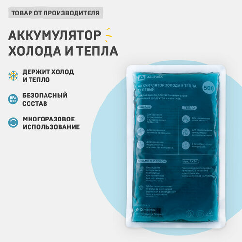 Гелевый аккумулятор температуры тепла и холода для термосумки и термоконтейнера Арктика АХТ-500, хладоэлемент 500 мл.