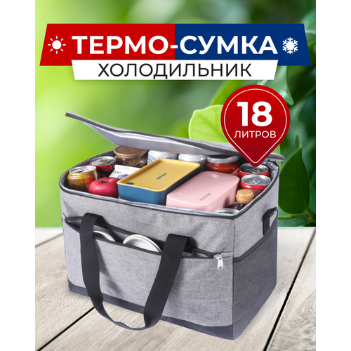 Сумка холодильник S-MAX объемом 18 литров со съемным плечевым ремнем, водонепроницаемыми швами для сохранения продуктов в тепле или холоде, серая