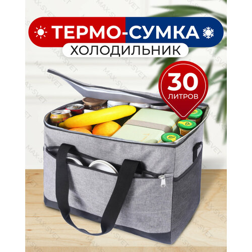 Сумка холодильник S-MAX объемом 30 литров со съемным плечевым ремнем, водонепроницаемыми швами для сохранения продуктов в тепле или холоде, серая