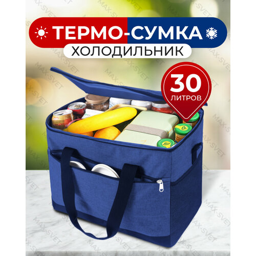 Сумка холодильник S-MAX объемом 30 литров со съемным плечевым ремнем, водонепроницаемыми швами для сохранения продуктов в тепле или холоде, синяя