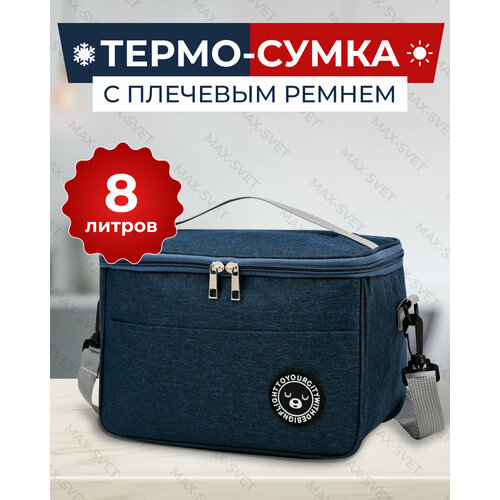 Сумка холодильник S-MAX объемом 8 литров со съемным плечевым ремнем, водонепроницаемыми швами для сохранения продуктов в тепле или холоде, синяя