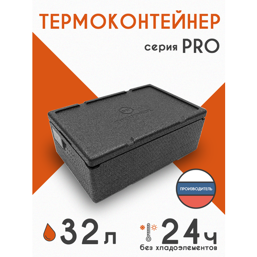 Термоконтейнер STP PRO 32 л. / Усиленный ударопрочный термобокс из вспененного полипропилена для доставки замороженных и охлажденных продуктов