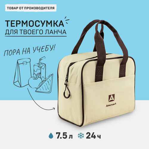Термосумка холодильник для ланч-бокса Арктика 3300-7 бежевый 7.5 литров сумка для обеда с ручками и внешним карманом