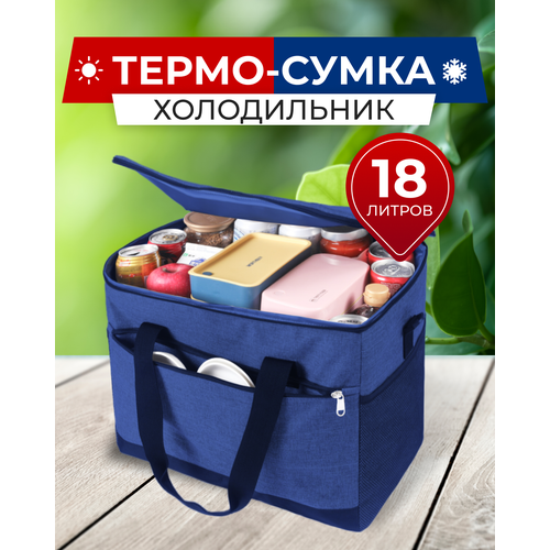 Сумка-холодильник (термосумка) 18 л (29х33х21 см) цвет синий/черный (MAXSVETSHOP)
