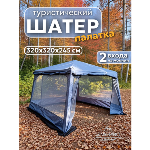 Шатер-беседка CAMPPLANET, с москитной сеткой, серый, 320x320см