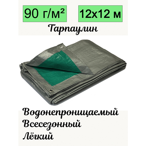 Брезент ROMITECH Эко 90 г/м 12x12 м, тарпаулин водонепроницаемый, серо-зеленый
