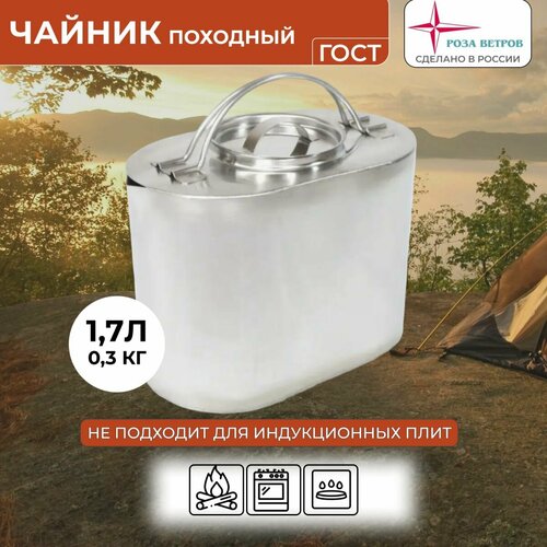 Чайник походный туристический 1,7л нержавеющая сталь Роза ветров