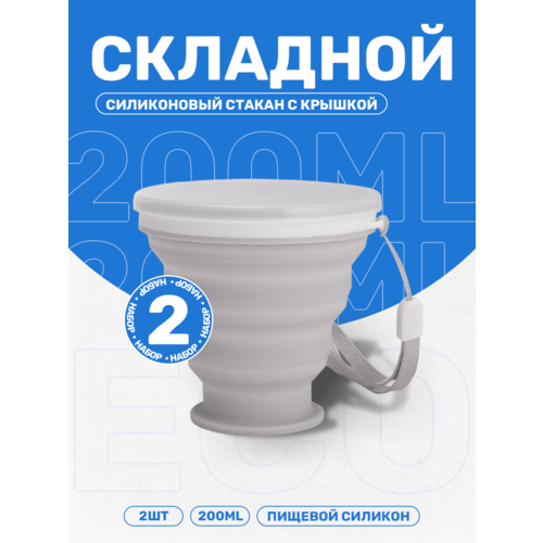 Складной стакан с крышкой 2шт, силиконовый, серый