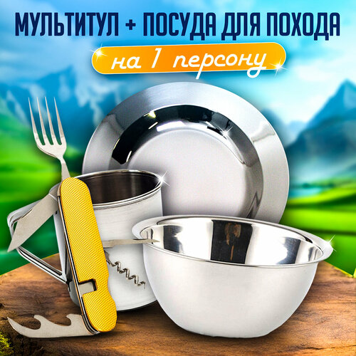Походный набор туристической посуды + Мультитул