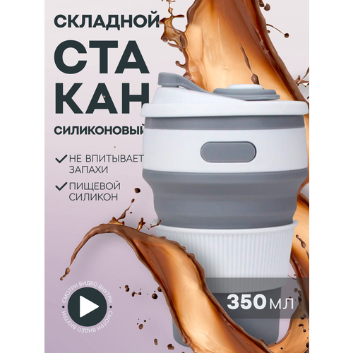 Складной стакан с крышкой, многоразовый силиконовый стакан для кофе, раскладной дорожный стакан. 350 мл.