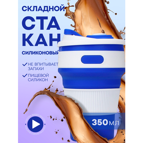 Складной стакан с крышкой, многоразовый силиконовый стакан для кофе, раскладной дорожный стакан. 350 мл.