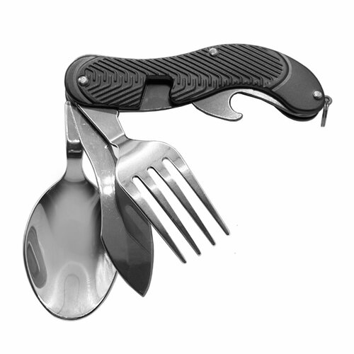 Многофункциональный походный набор столовых приборов 4 в 1 (черный)