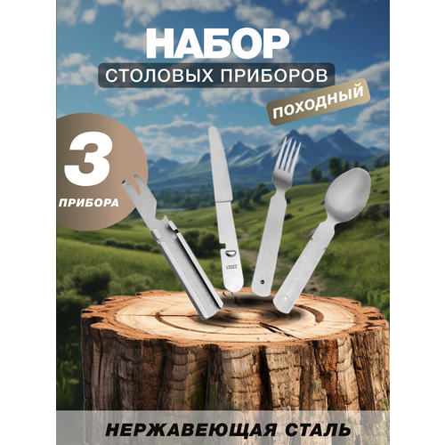 Набор посуды на 1 персону - идеальное решение для питания путешественника и туриста. Вилка, ложка, нож и открывашка для бутылок делают его универсальным инвентарем для пикника, на похода, рыбалки и охоты. Компактный кемпинговый складной набор металл легко помещается в рюкзак или походное снаряжение, занимая минимум места. Все предметы для полевой кухни выполнены из прочной пищевой нержавеющей стали. Металлические аксессуары хорошие многофункциональные столовые приборы для приготовления еды на природе. Легкий дорожный алюминиевый набор с ложкой и вилкой станет незаменимым помощником в длительных путешествиях и поездках. Железный многоразовый комплект вилка-ложка хорош для выживания или как военный и охотничий инструмент для пищи охотника и рыболова. Туристические вещи могут быть отличным подарком для любителей активного отдыха и приключений на день рождения или Новый год. Все для кемпинга и туризма у вас под рукой с нашими товарами!
