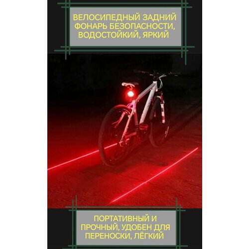 Велосипедный фонарь задний с 7 режимами подсветки, с двумя ограждающими световыми лазерами, водостойкий, яркий.