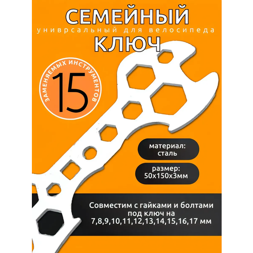 Ключ для велосипеда универсальный семейный, для болтов от 7 до 17мм, длина 15см.