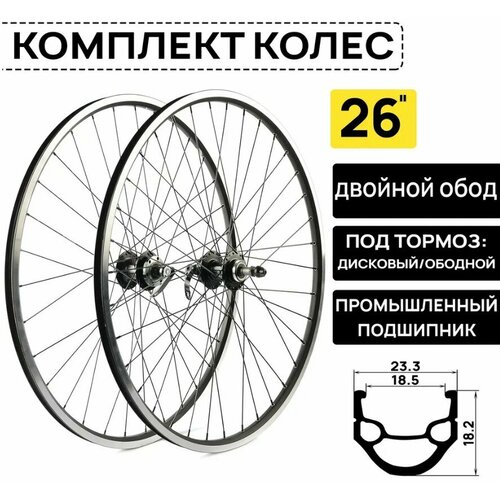 Комплект колес ARISTO DH-18 на 26" под трещотку 6/7/8 скоростей. двойной обод, совместим с дисковыми и ободными тормозами, втулки на пром. подшипниках.
