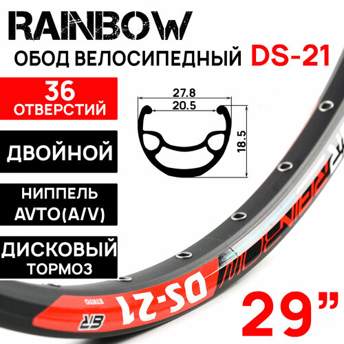 Обод Rainbow DS-21, 29" (622х21С), двойной, под дисковый тормоз, 36 отверстий, черный