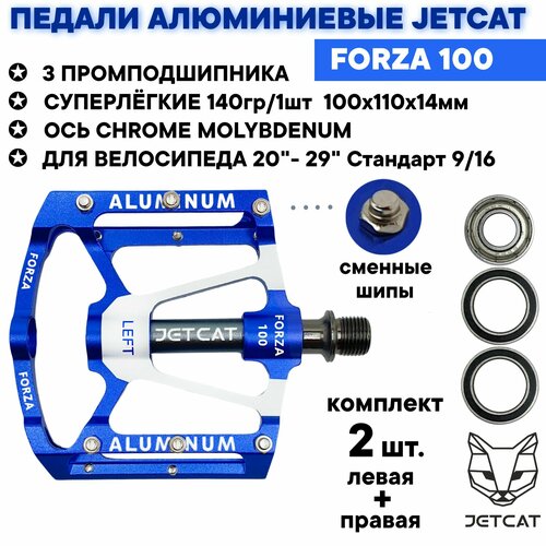 Педали велосипедные - JETCAT - Forza 100 - 3 промподшипника алюминиевые Blue (взрослые для горного велосипеда)