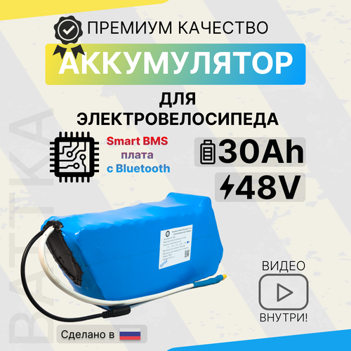 Аккумулятор 48 В, 30 Ач, для электровелосипедов с Smart BMS "Battka" , смарт бмс , li-ion, 30000 mAh, литиевая батарея