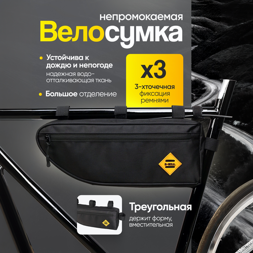 Велосипедная сумка, крепление на раму, влагонепроницаемая, черная