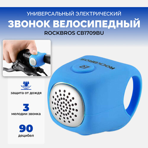 Звонок RockBros, на руль, влагозащищённый, пластик/резина, с креплением, 93 Дб, синий