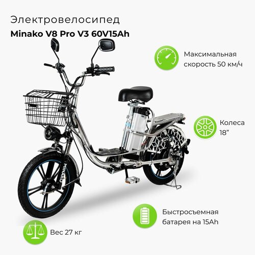 Электровелосипед Minako V8 PRO V3 60V/15Ah гидравлика