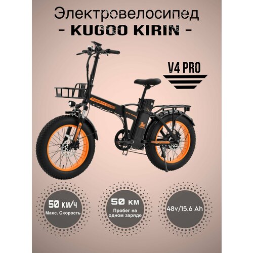 Электровелосипед Kugoo Kirin V4 Pro 2024 750 W, складной, алюминиевый сплав, 20 дюймов, черный, оранжевый