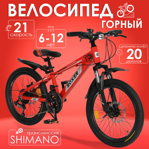 Горный велосипед детский скоростной Boxer 20" красный, 6-12 лет, 21 скорость (Shimano tourney)
