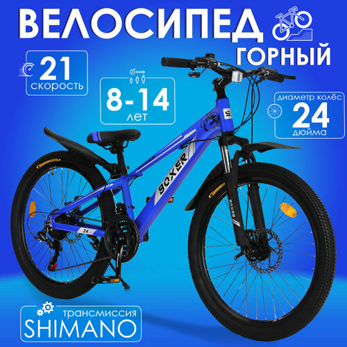 Горный велосипед детский скоростной Boxer 24" cиний, 8-14 лет, 21 скорость (Shimano tourney)