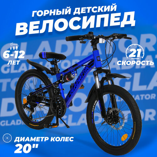 Горный велосипед детский скоростной Gladiator 20" синий, 6-12 лет, 21 скорость, 2 амортизатора