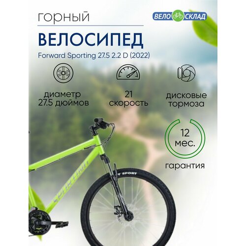 Горный велосипед Forward Sporting 27.5 2.2 D, год 2022, цвет Зеленый-Серебристый, ростовка 17