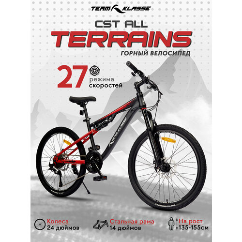 Подростковый горный велосипед Team Klasse B-7-B, темно-серый, красный,24 "