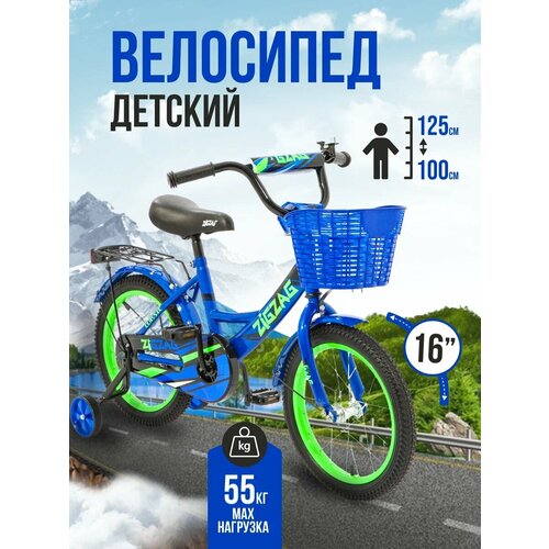 Велосипед детский двухколесный 16" ZIGZAG CLASSIC синий для детей от 4 до 6 лет на рост 100-125см (требует финальной сборки)