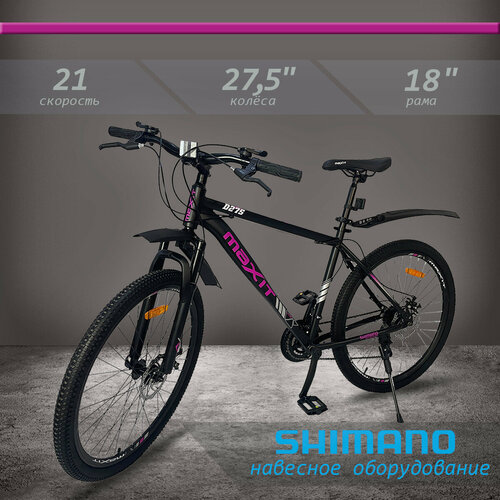 Велосипед горный MAXIT D275-BF, 21 скорость, черный/фуксия