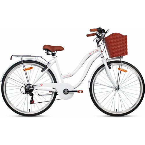 Велосипед городской SITIS MIRAGE SMRG26 26" (2024), ригид, взрослый, женский, стальная рама, оборудование Shimano Tourney, 7 скоростей, ободные тормоза, цвет White-Orange, белый/оранжевый цвет, размер рамы 17", для роста 170-180 см