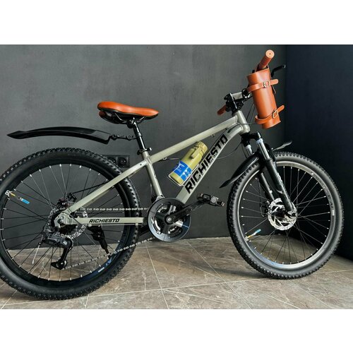 Велосипед RICHIESTO 24" Алюминиевая рама 14" Горный Для детей и подростков Спортивный, зеленый с коричневым