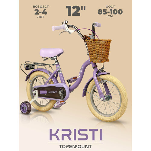 Велосипед двухколесный детский 12", рост 85-100 см, на 2 года 3 года 4 года, для девочки, TOPEMOUNT KRISTI
