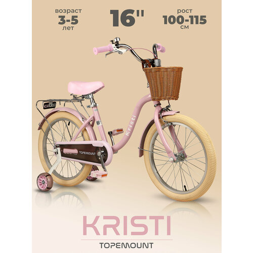 Велосипед двухколесный детский 16", рост 100-115 см, на 3 года 4 года 5 лет, для девочки, TOPEMOUNT KRISTI