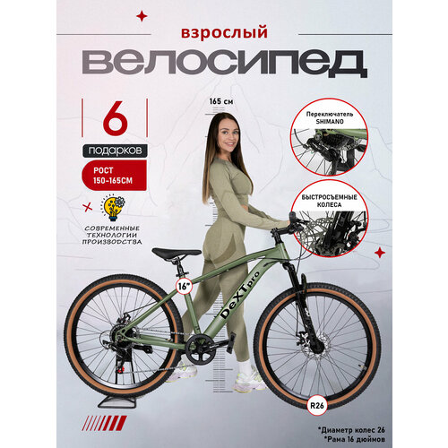 Велосипед DEXTpro001 взрослый скоростной горный колеса 26 дюймов, рама 16, зеленый