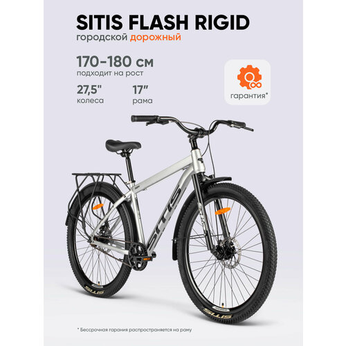Велосипед городской SITIS FLASH Regid 1SP 27,5" (2025) White-Black для взрослых на рост 170-180 см, стальная рама