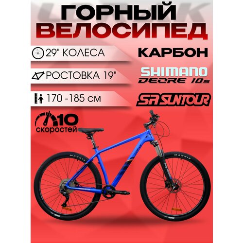Велосипед карбоновый LORAK Carbon 29 300 Матовый Синий/Чёрный под рост 170-185 см