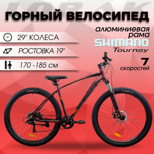 Велосипед LORAK Safe PLUS 29, горный, алюминиевая рама, двойной обод, 7 скоростей, Матовый Коричневый, под рост 170-185 см