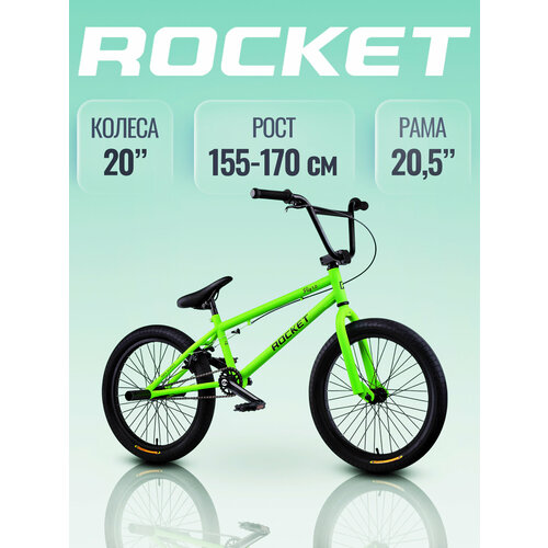 Велосипед трюковой 20" Rocket BMX Flip 1.0, цвет зеленый, рама 20,5". Рекомендованный рост 155-170 см.