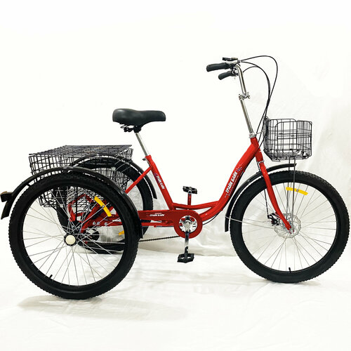 Внедорожный велосипед с двумя корзинами для взрослых высокого роста Трайк Байк 26, цвет красный
